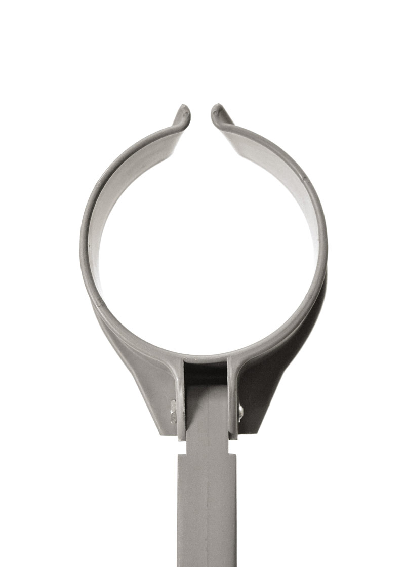 Epoxy-coated adult forearm crutches with 4" (10 cm.) diameter full cuff featuring a V-shaped front opening for quick release. Height-adjustable grip to floor. Cuff is hinged at 8 ¾" above grip (22 cm.). Comes fitted with model T10 Pivoflex tips.